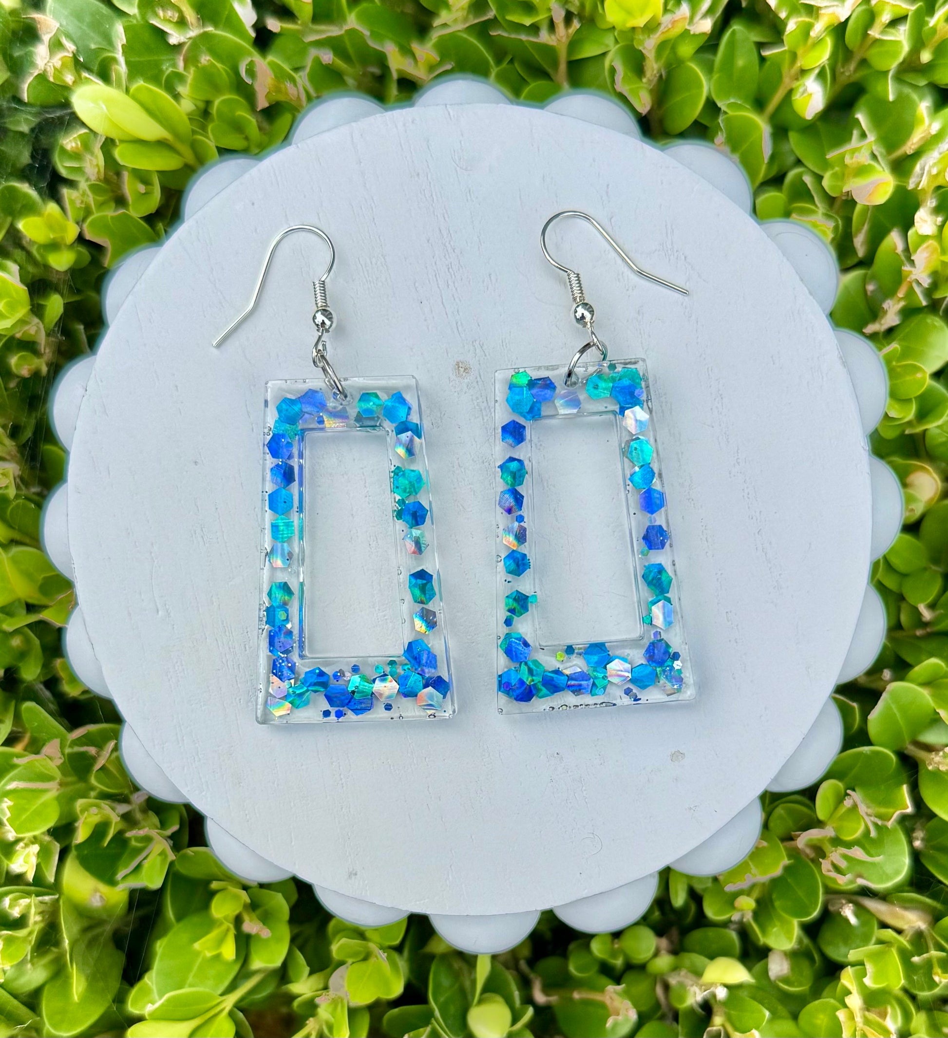 Aqua Confetti RESIN Earrings that sparkle!