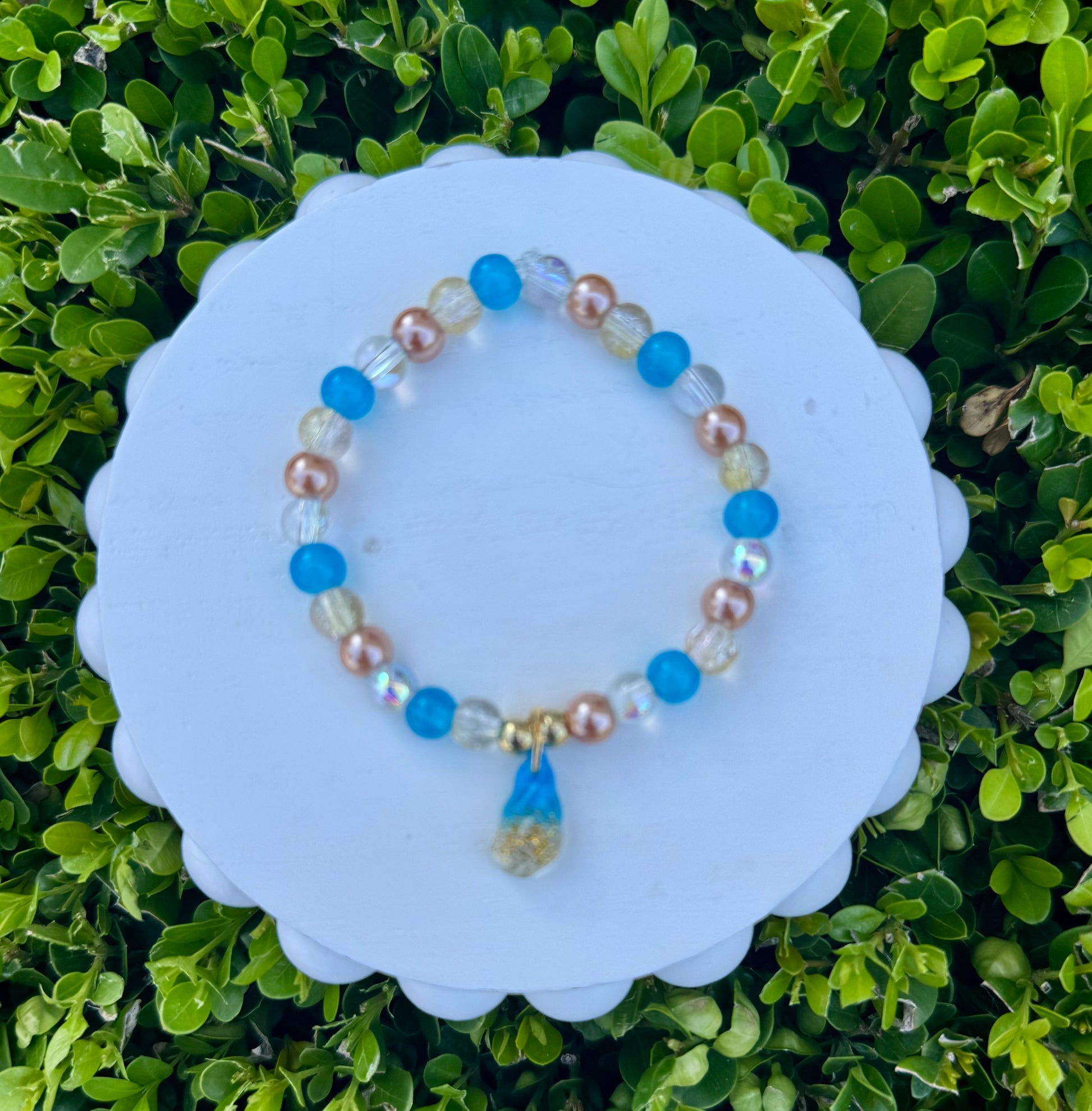 Handmade Beaded Bracelet with RESIN Shell Charm. Size Medium.