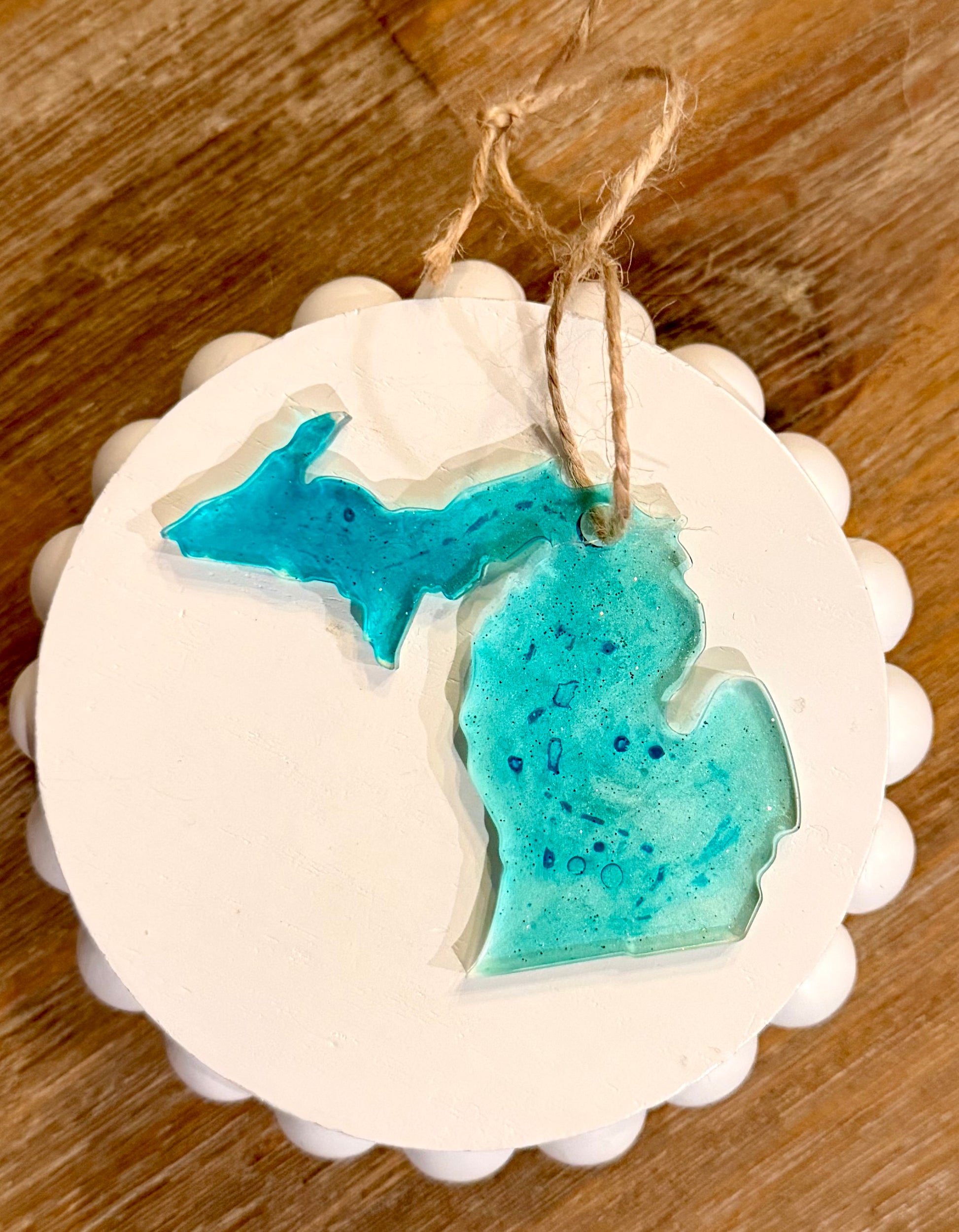 Unique handmade Resin “State of Michigan” ornament. Styles and colors vary.