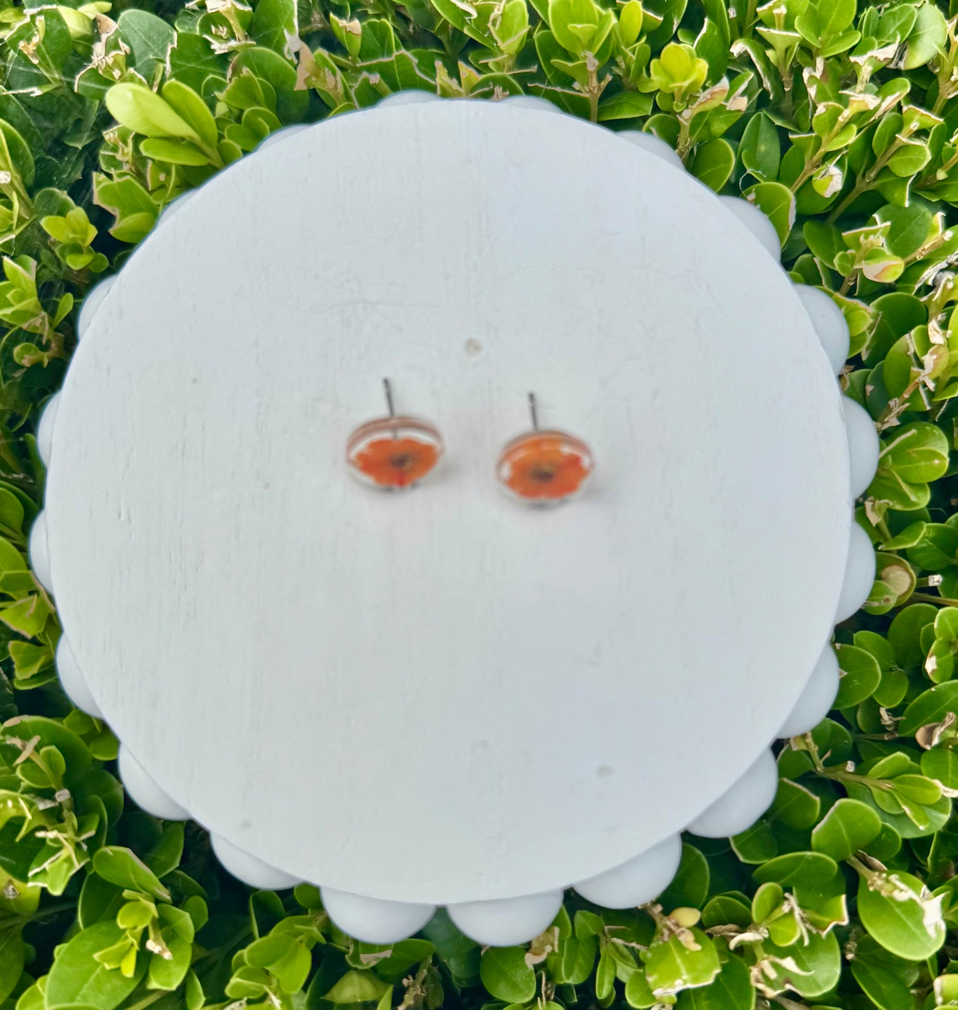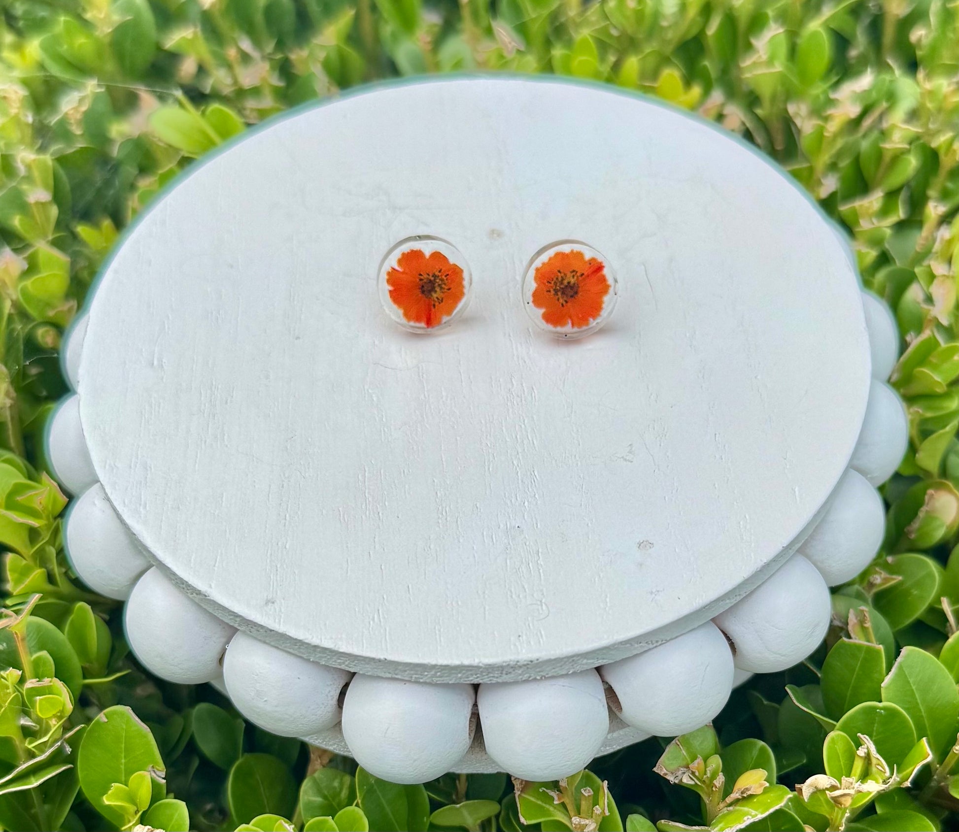 Handmade Flower Resin earrings! Beautiful sterling silver stud earrings with orange flower design inside.